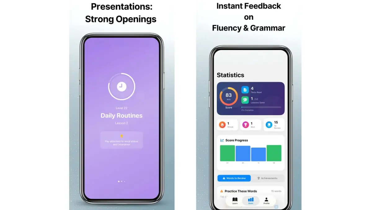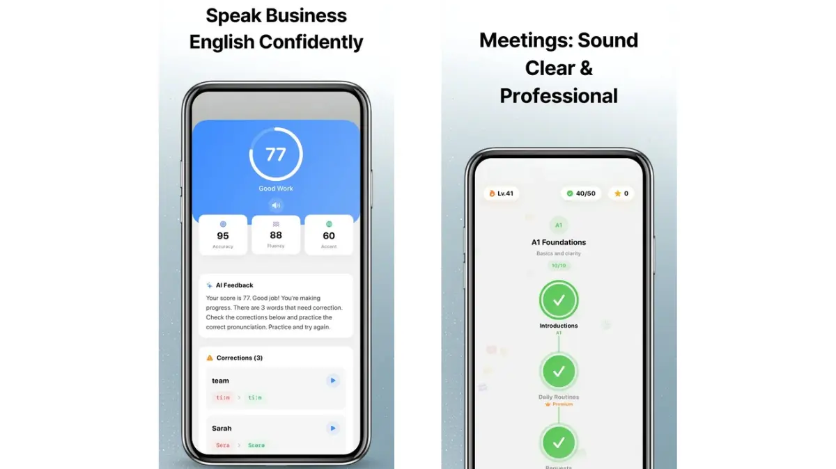 如果你需要上台做簡報,App 也針對開場白、段落過渡語、以及應付 Q&A 環節設計了專項訓練,讓你把整個流程都能說得流暢有條理。另外,職場電郵的撰寫也有納入,App 會根據你的文字給出語氣建議,幫你調整到更專業的表達方式。