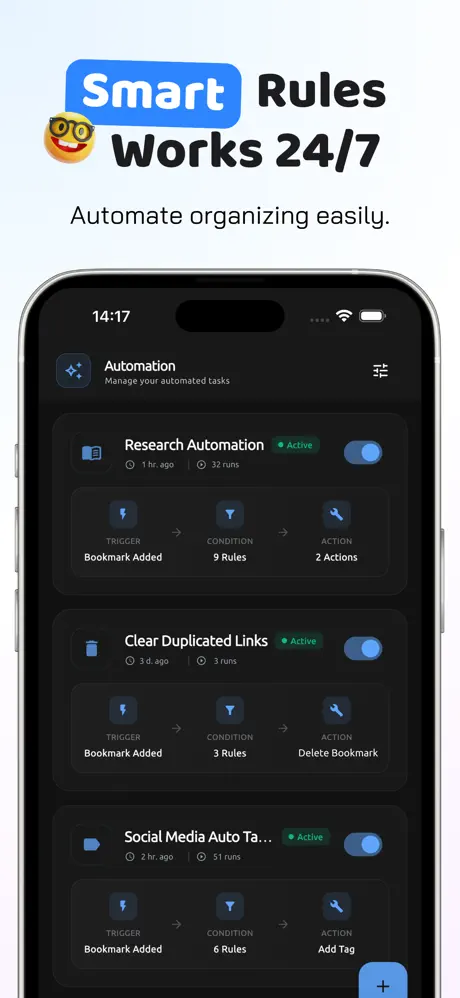 「Smart Rules 智慧規則」這項功能對於收藏量龐大卻無暇整理的使用者來說是救星,它允許使用者預先設定條件,例如當網址包含特定關鍵字時,系統便會自動加上標籤並移入指定資料夾。告別手動分類的繁瑣過程。另外 App 整合了 iOS 分享表單,當你在 Safari、Chrome 或任何 App 中看到感興趣的內容,只需點擊分享並選擇 Kutu,連結便會直接進入資料庫並觸發上述的自動分類規則。
