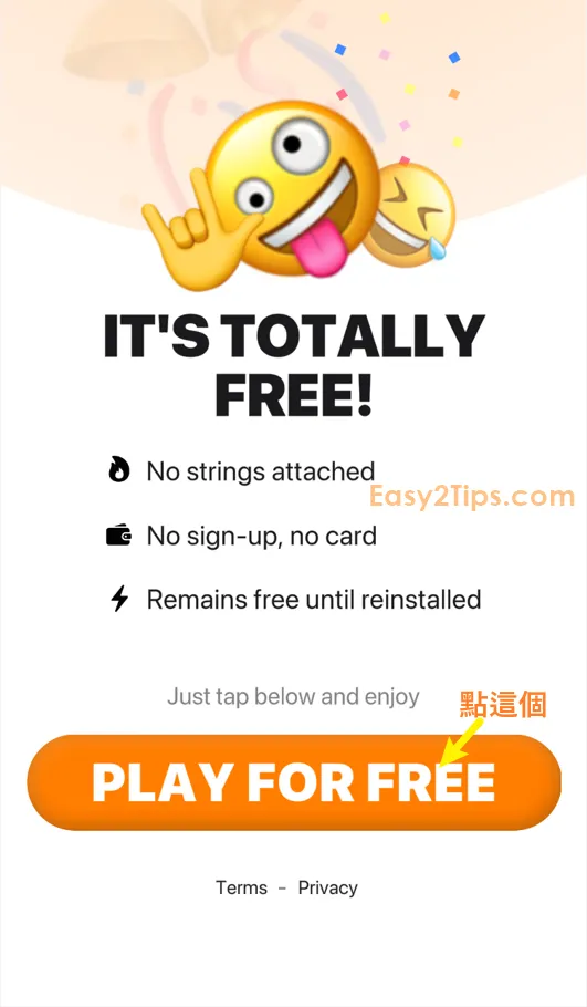 只要下載並打開 App,然後完成一些基本設置後,接著會看到優惠頁面。如果看到「PLAY FOR FREE」按鈕,點擊此選項,透過 Apple ID 認證即可免費獲得。