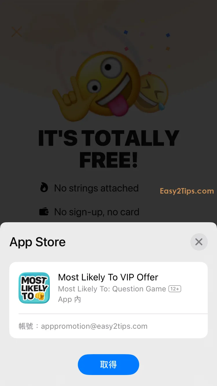 ( 請注意:如果在 Apple ID 認證時顯示任何價格,表示並非免費。)