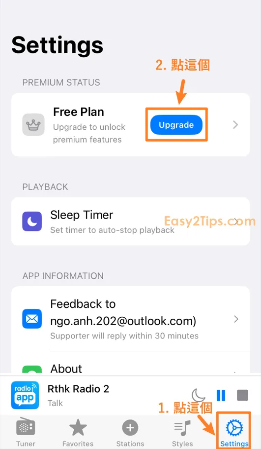 只要下載並打開 App,然後會看到付款選項頁面。先按下方的「Continue Without Premium」離開,之後點擊右下方的「Settings」,再按 PREMIUM STATUS 的「Free Plan」 會出現付款選項頁面,如果看到「Lifetime」價格顯示為 $0,點擊此選項並按「Buy Lifetime for $0」,透過 Apple ID 認證即可免費獲得。